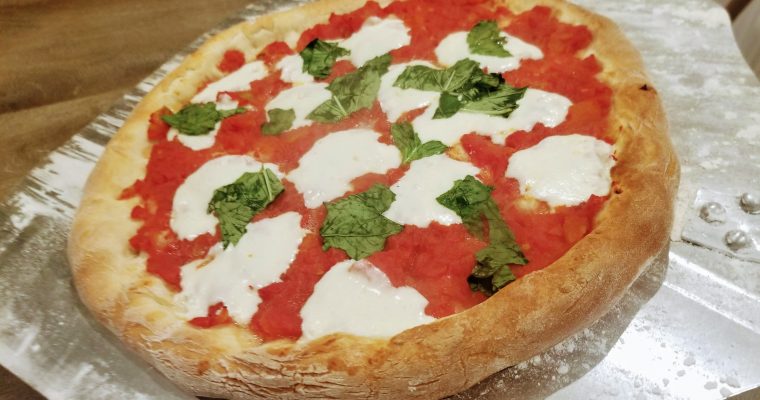 - Flatten the pizza with the palms of your hands into an 8″ disc.